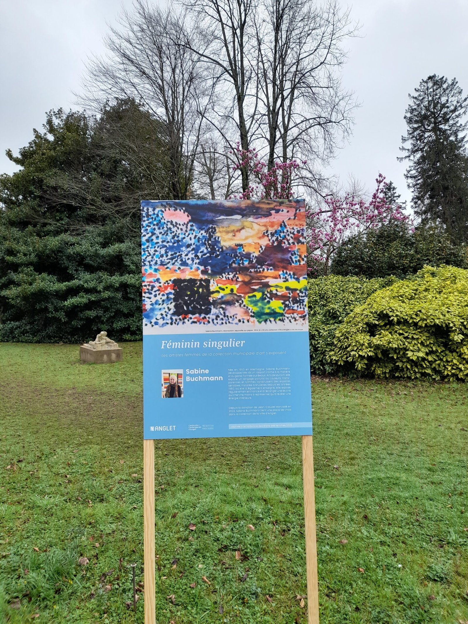 Parmi les artistes femmes ayant exposé à la Villa Beatrix Enea, l’organisatrice de cette exposition en plein air, exposition qui durera tout le mois, la régisseuse Violette Caubisens, a choisi des œuvres de deux femmes-peintres de la Collection Valentine et Jean-Claude Marcadé, appartenant à la Villa, la Russo-ukrainienne Anna Staritsky (1906-1981) et l’Allemande de Bruxelles Sabine Buchmann