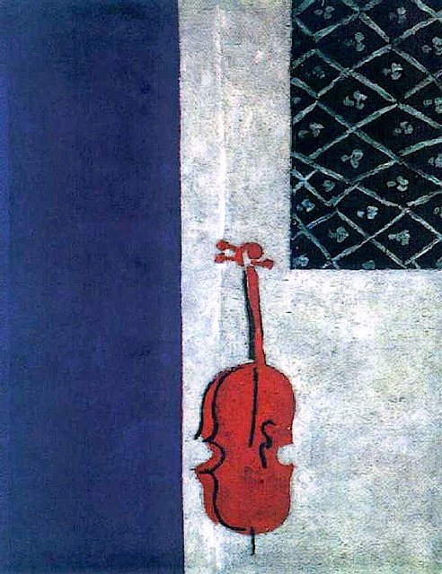 le fait de la petite dimension de l’instrument qui a fait croire qu’il s’agissait d’un violon, ce qui explique que Ksana, qui n’avait aucune culture musicale, a présenté sa peinture à la colle (MNAM) horizontalement, alors que je me souviens que l’original à l’huile du Musée national russe a été, il y a très longtemps, exposé verticalement, ce qui donne plus de sens à cette suprématisation d’un violoncelle.