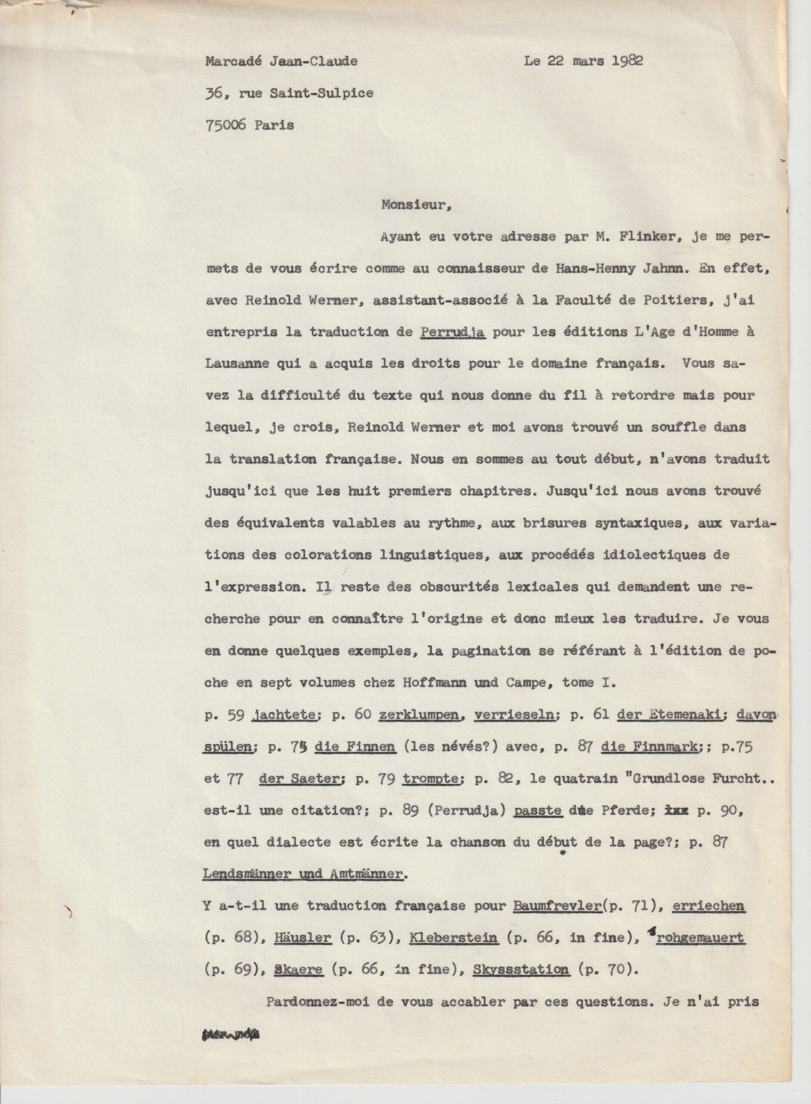 Prière à Saint Spyridon, tapuscrit du moine Maxiane (le sculpteur Maxime Arkhanguelski)