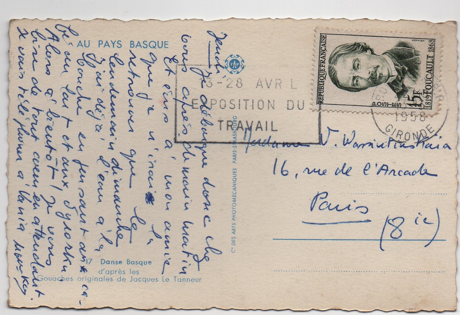 CARTE D’ANNE-MARIE TEILHAC, DITE « MYCHKA »