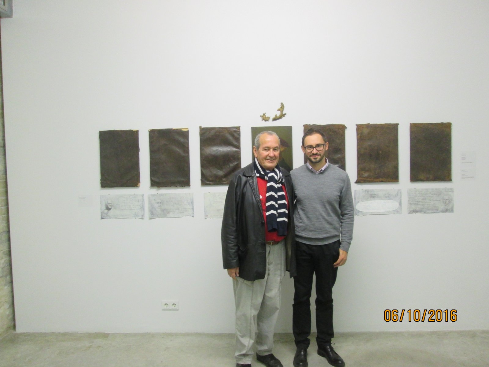 JEAN-CLAUDE MARCADÉ ET LE DIRECTEUR DE « YA GALARÉYA » DEVANT LES OEUVRES DE VOLODYMYR KOSTYRKO DÉDIÉES À MALÉVITCH