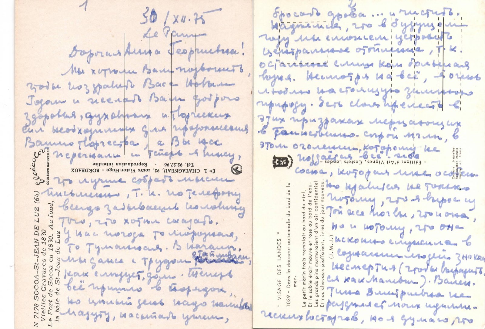 Fragments de lettres de Jean-Claude Marcadé à Ania Staritsky